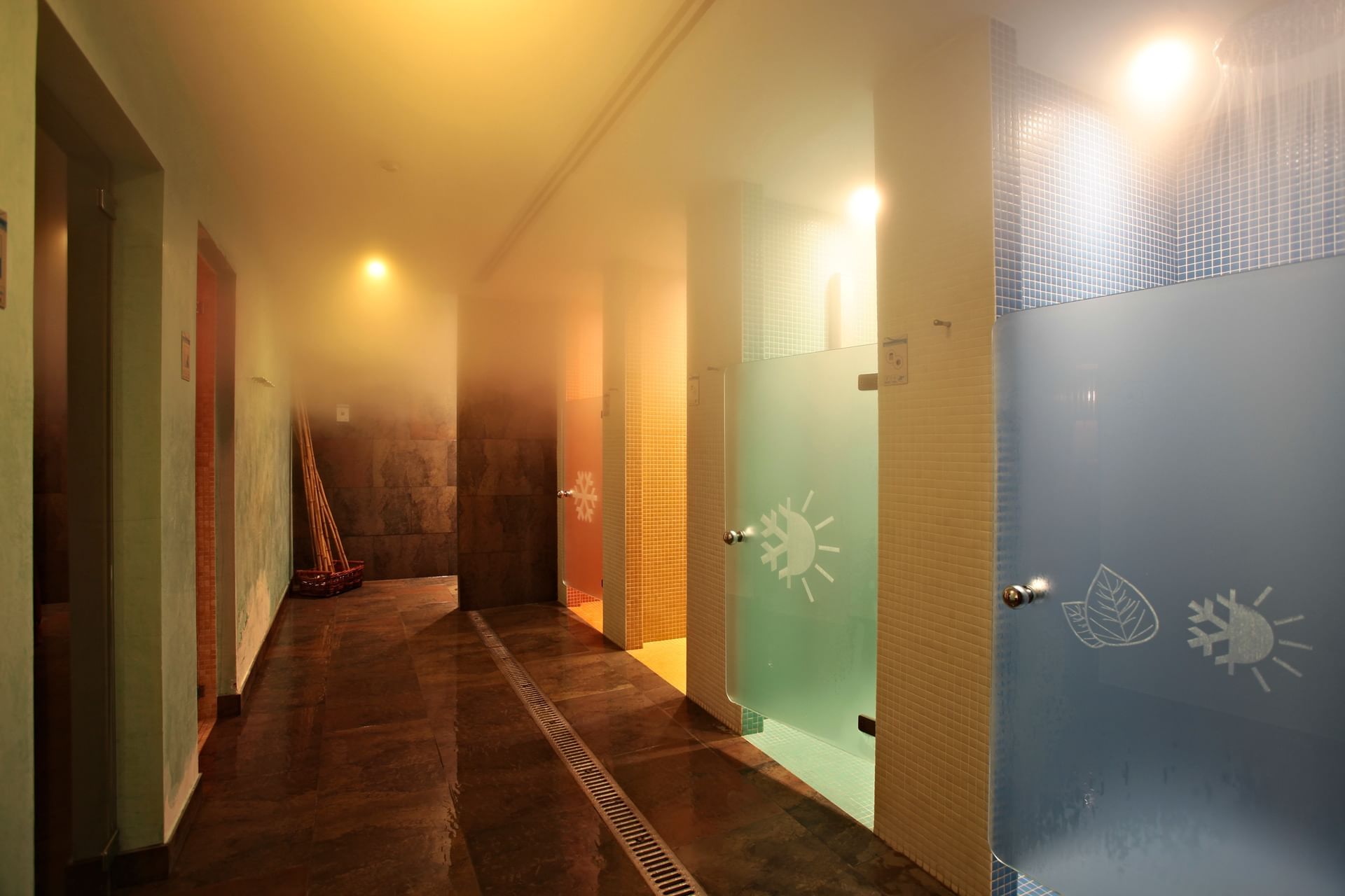 Das Aimia Spa verfügt über eine Sauna, ein türkisches Bad, einen 8 x 4 Meter großen beheizten Pool mit Zyklon-Duschen, einen Whirlpool und einen Entspannungsbereich.