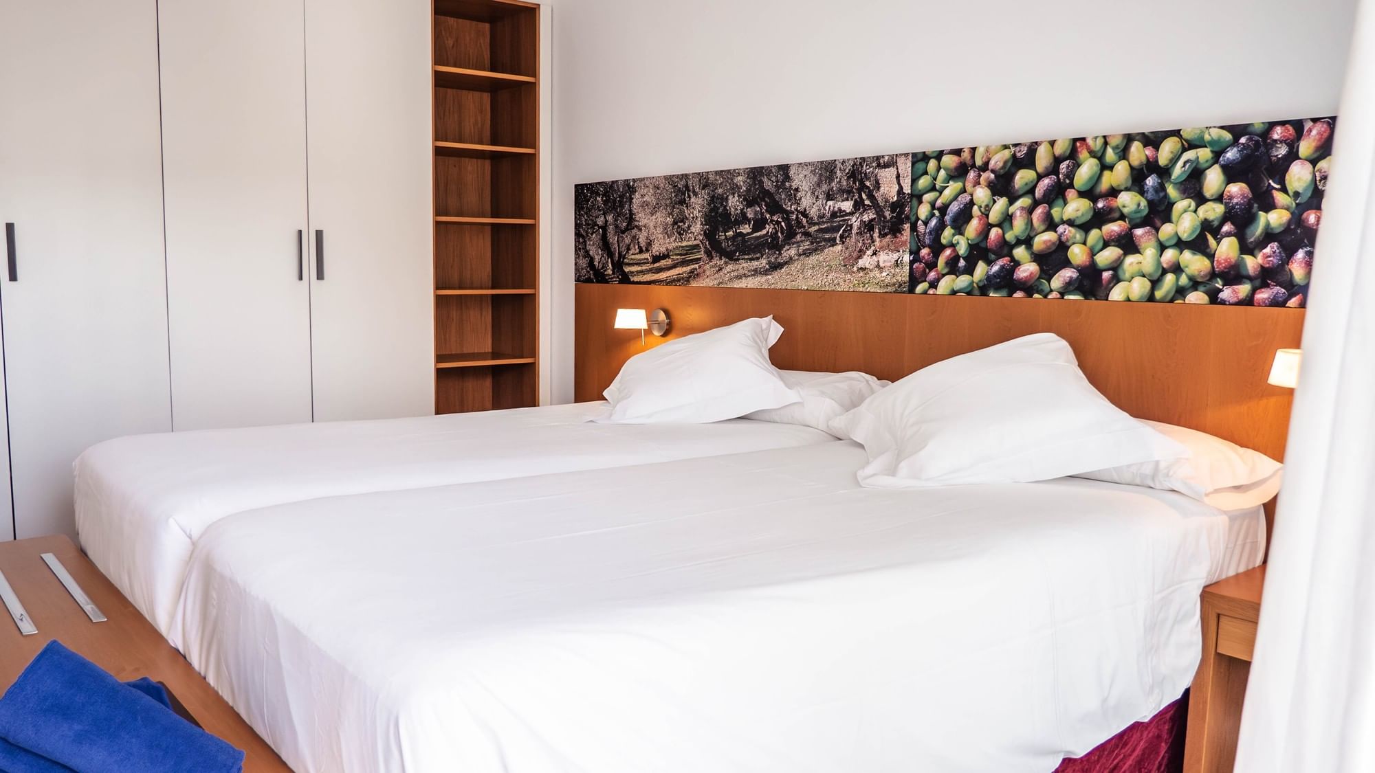 Les chambres de l’Aimia Hotel sont conçues dans un style méditerranéen élégant et lumineux. Des tons doux, des matériaux naturels et une distribution soignée créent des espaces chaleureux où le repos est au centre de l’expérience.