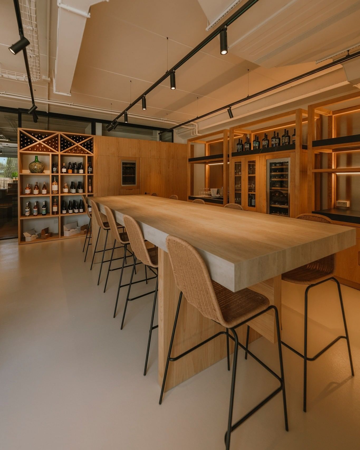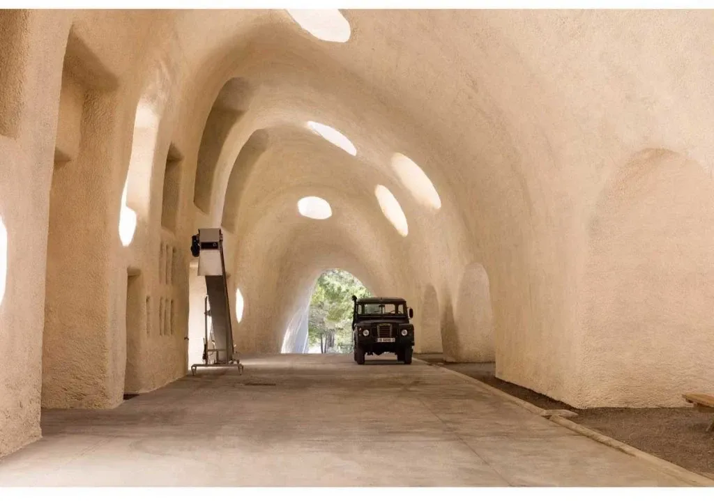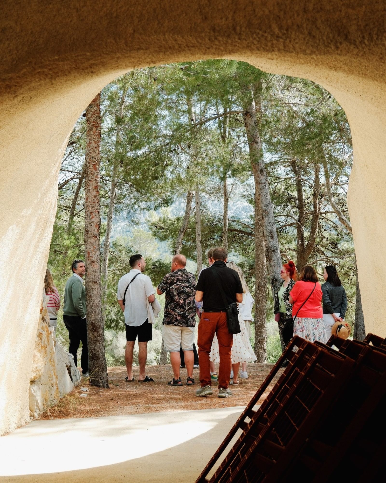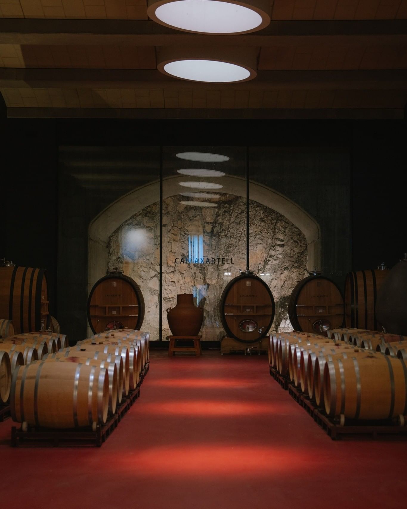 À l’arrivée, on découvre comment Can Axartell se présente comme une cave moderne, parfaitement intégrée dans le paysage et conçue pour fonctionner selon la méthode de la gravité, une technique qui permet de produire des vins majorquins d’une pureté et d’une finesse extraordinaires. L’un des éléments les plus emblématiques est le bâtiment semi-enterré dans la roche, une œuvre d’ingénierie qui allie architecture contemporaine et respect total de l’environnement, quelque chose que l’on perçoit avant même de commencer la visite.